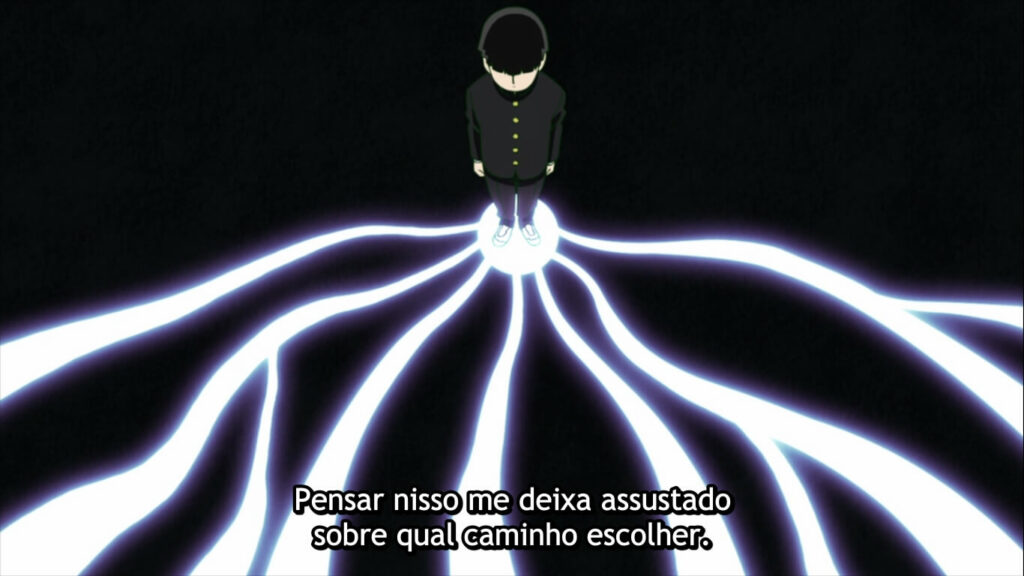 Essa mistura entre as aventuras psíquicas de Mob com seus conflitos sempre foi bem traçado pelo roteiro, ora de forma bem subjetiva, ora de forma mais expositiva, como na primeira temporada na luta contra Teru. Neste episódio de estréia temos um pouco destas duvidas de Mob, desta vez sobre o que ele fará no futuro. Tal duvida recebe seus contrapontos, sejam das pessoas e a pressão que todos fazem no garoto, seja com o caso psíquico da semana.