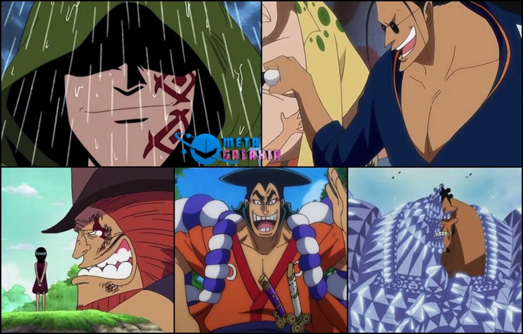 Já Shiki, além de ser um personagem que possui habilidades diferentes, ainda era um antigo adversário de Roger e um pirata comum. Por qual motivo ele ficaria vagando enquanto protege a pedra vermelha? Shiki possui uma cicatriz, é poderoso suficiente para proteger o Poneglyph, mas não parece ter qualquer razão para tal feito.