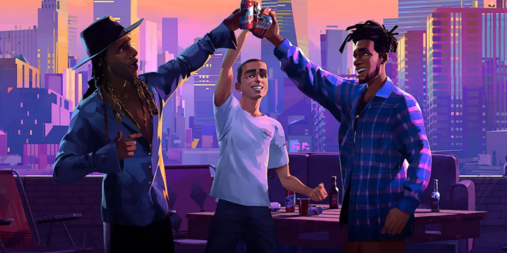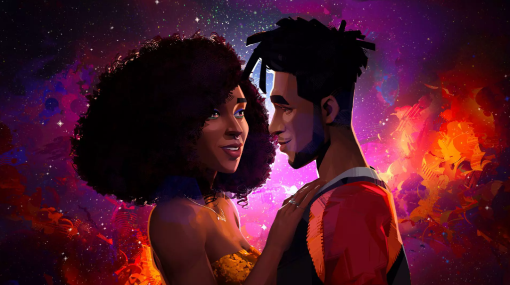 Lembrando por muitas vezes a estética de Homem-Aranha no Aranhaverso, Entergalactic possui uma animação bem diferente das padrões que já conhecemos como Disney e Dreamworks. Isso torna o longa muito singular, para além do seu enredo. Combinando muito bem a paleta de cores, design de ambiente e trilha sonora.