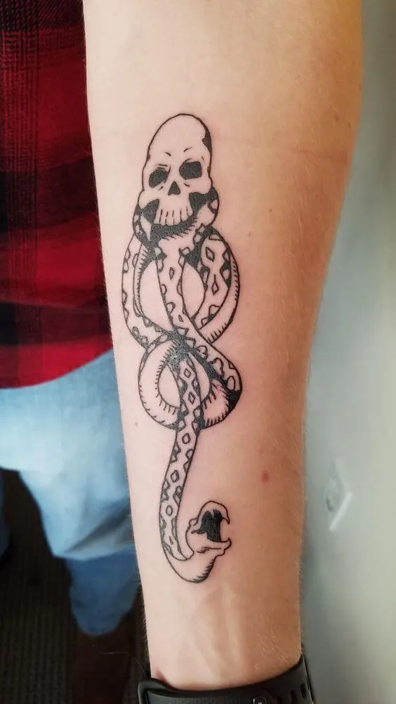 5- Essa não podia faltar, tatuagem dos Comensais da Morte (Caveira e Cobra):