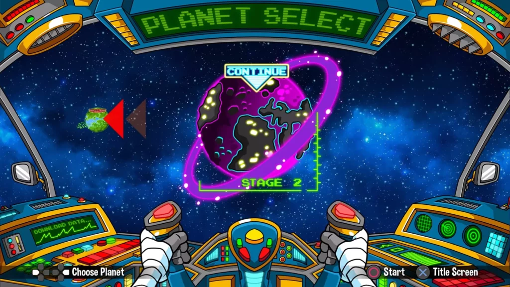 Além disso, enquanto trocamos de planetas (vulgo passamos de fase), podemos encontrar facilmente referências às famosas franquias Street Fighter, Castlevania e Mortal Kombat. E provavelmente há outras referências que não notei enquanto jogava.