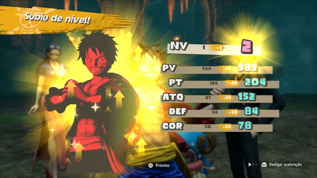 Eu diria que a dinâmica do jogo é como se você estivesse assistindo ao filme de One Piece e tivesse pequenas participações, não sei dizer se esse era o objetivo dos criadores, mas se era, eles obtiveram sucesso.