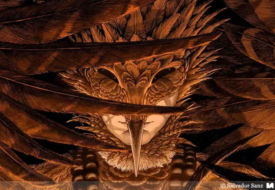 Salvador Sanz tem sido um dos grandes nomes recentes do quadrinho argentino. Fez trabalhos excelentes como: Mega, Esqueleto, Legião. Aqui em Noturno, o autor nos apresenta algo que mescla terror e fantasia. Claramente inspirado em uma abordagem “Lovecraft”, a obra nos mostra um cenário onde alguns pássaros monstros (ou homens pássaros) estão aqui na Terra e planejam alguma maneira de invadir e se estabelecerem em nosso mundo.
